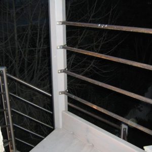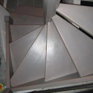 Escalier 4/4 tournant avec rampe métal, de style contemporain, sans contre-marches.