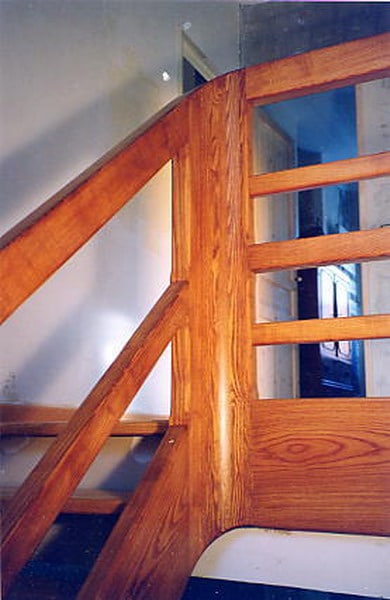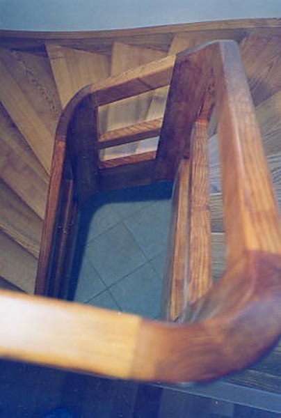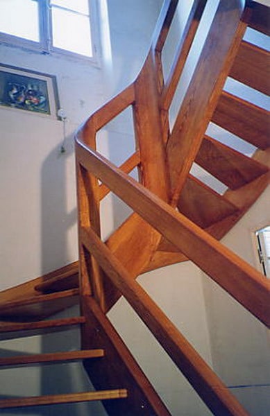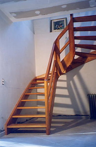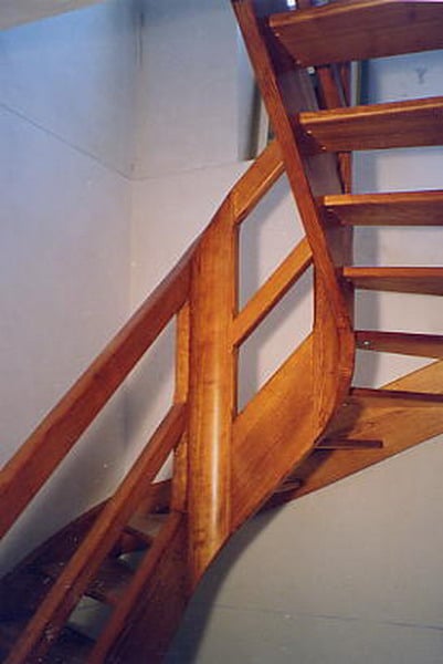 09-16 Escalier courbe, limon galbé, poteau noyau débillardé.